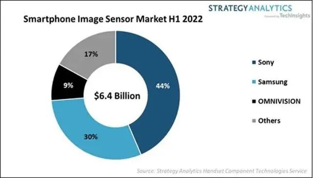 Strategy Analytics的研究發(fā)現,智能手機圖像傳感器市場規(guī)模在2022年上半年同比下降5%。索尼半導體解決方案以44%的收入份額位居榜首,三星系統(tǒng)LSI和OMNIVISION緊隨其后。索尼、三星和OMNIVISION占據了全球智能手機圖像傳感器市場近83%的收入份額。在智能手機的多攝像頭應用方面,Depth和Macro應用的圖像傳感器市場份額下降到26%,而Ultrawide應用的市場份額上升到20%。