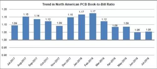 7月份北美PCB行業(yè)繼續(xù)增長 出貨比穩(wěn)定在1.05
