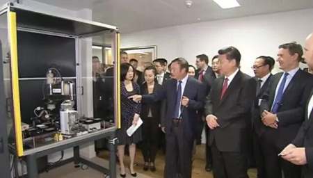 隨后,習大大走進公司展廳,駐足參觀機械手和終端產品展示,與發(fā)明設計的英國員工親切交談,不時詢問有關情況。