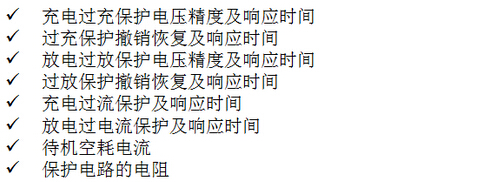 電池保護(hù)板是整個電池的大腦,控制電池的充電過充電壓,放電終止電壓,過流保護(hù),高溫保護(hù)等,常見的電池保護(hù)板的測試項目主要有: