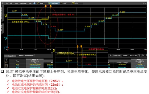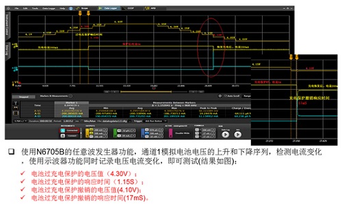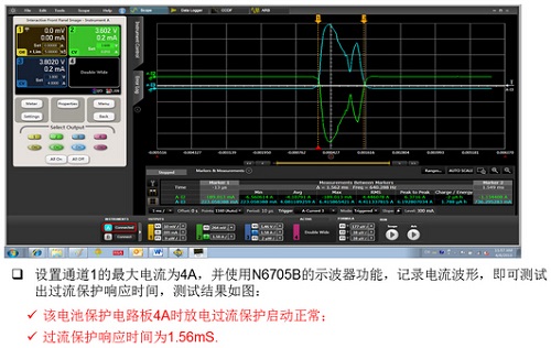 綜上所述,N6705B電源分析儀的部分模塊,如N6784A,N6752A具有雙象限能力,即可以作為電源輸出,也可以作為負(fù)載吸收電流,同時又具有電壓、電流示波器的功能。 使得復(fù)雜的電池保護(hù)板測試變得如此簡單!