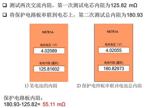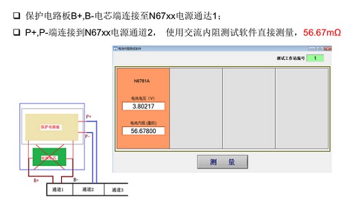 C. N6705B 通道2仿真電芯(內(nèi)阻為0),通道1作為電池內(nèi)阻儀直接測試保護(hù)電路板的交流內(nèi)阻 。