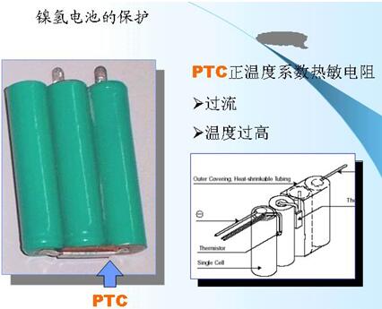 手機(jī)鎳氫電池的保護(hù)器件非常簡單,就是圖中的哪個跨在兩節(jié)電芯之間的扁扁的扁帶一樣的東西,稱為可恢復(fù)式保險絲,又稱PTC,即正溫度系數(shù)熱敏電阻的英文簡寫.在電路上,它是串聯(lián)在供電回路里面的.一旦發(fā)生大電流(比如短路)的情況,就會因其PTC效應(yīng)迅速增加其本身的電阻值,起到斷路的作用.