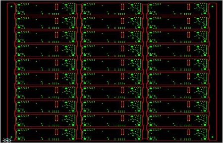 例3,有金手指的拼版,手指位不能在板中間,需放置在外圍