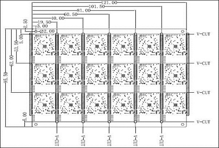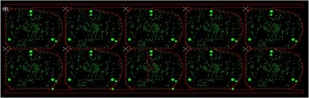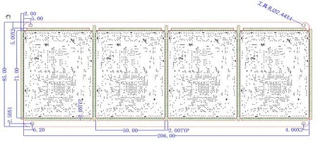 例1,電路板外形為規(guī)則(或接近)矩形或正方形,首先按第建議利用率的尺寸拼,拼版兩邊加5mm工藝邊