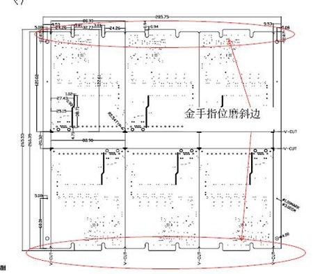 ·不可以V-CUT情況:板邊焊盤(pán)不允許削銅,SLOT孔與外形距間<0.60mm且與外形平 ,內(nèi)外層走線距外形<0.40mm等