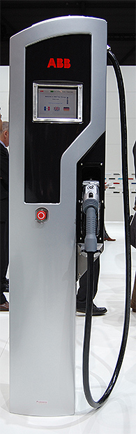 下圖為ABB充電站正在為車(chē)展上的電動(dòng)汽車(chē)提供電力供應(yīng)