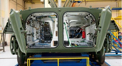 生產(chǎn)線上正在組裝的步戰(zhàn)車??吹杰噧?nèi)的景象,告訴軍工線路板廠的是——你們需要做好的是保證車內(nèi)的線路板的功能性和品質(zhì)。