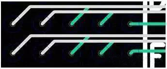 兩個(gè)過(guò)孔間能過(guò)兩根線的BGA出線,共用2個(gè)走線層
