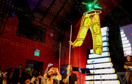 這是在本月硅谷一家時尚服飾品牌公司Betabrand承辦的一次硅谷時裝周。很明顯,無人機(jī)的使用提醒著觀看時裝周的人們,這不是一個傳統(tǒng)意義上的時裝表演,它似乎在像人們宣布,今天的時裝周用人當(dāng)模特,但未來,一定會是機(jī)器人。