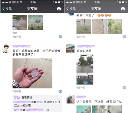 天氣這么“給力”,所以大家出門要注意安全咯!不多說了,朋友圈撿冰雹去!