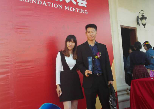 圖為深聯(lián)電路常經(jīng)理與洲明科技葉小姐合影