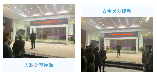 人政部李厚軍和安全員劉建明對(duì)此次消防演習(xí)進(jìn)行總結(jié)