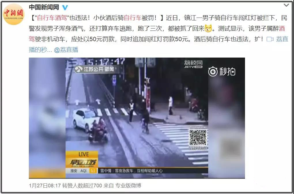 其實(shí),早在今年1月的時(shí)候,就有人醉酒騎自行車(chē)闖紅燈,被罰了100元。不少網(wǎng)友當(dāng)時(shí)還戲稱(chēng)他為“2018年騎自行車(chē)被罰第一人”……