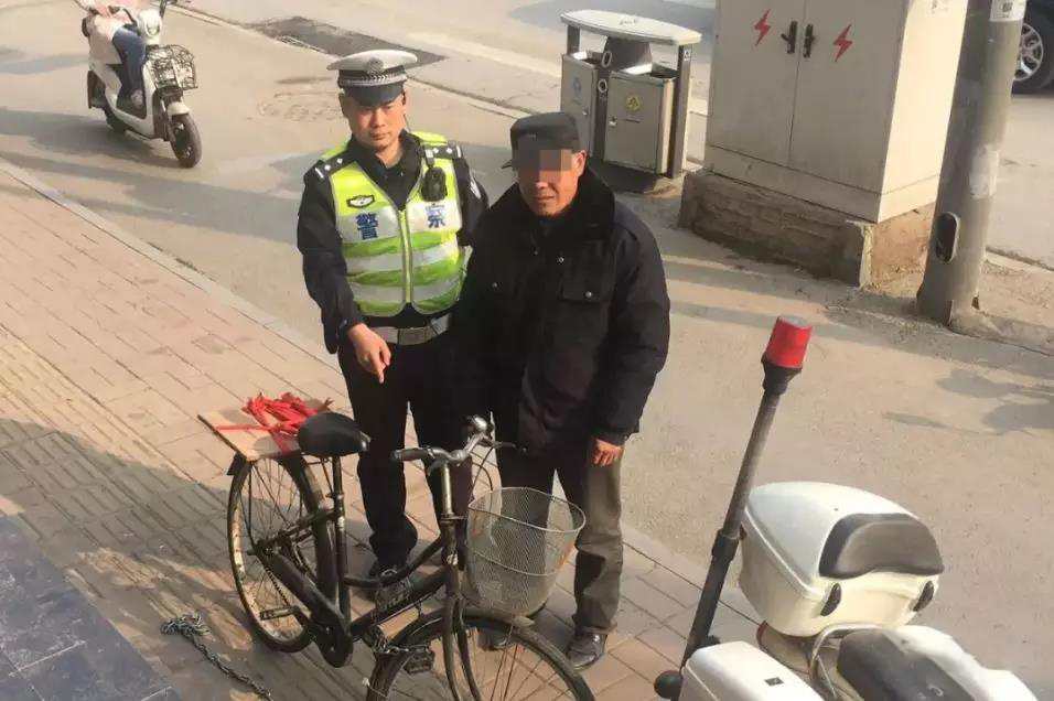 322日下午,濟(jì)南歷下交警大隊(duì)六中隊(duì)民警,在查處一違法駕駛?cè)藭r(shí),一老人騎著自行車(chē)停到民警身邊,對(duì)民警說(shuō):你看我這樣行不行,行不行?