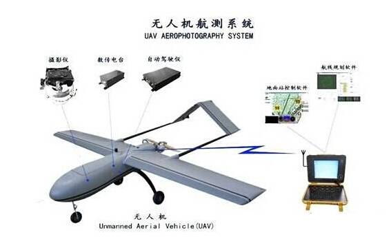 一個完整的飛人機航測系統(tǒng)包括:無人機,攝影儀,數(shù)傳電臺,自動駕駛儀,地面站控制軟件,地面站,航線規(guī)劃軟件,作戰(zhàn)裝備(軍用)等等。