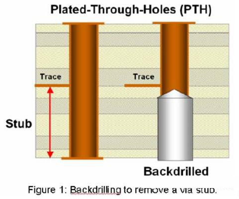 背鉆技術(shù)就是利用控深鉆孔方法,采用二次鉆孔方式鉆掉連接器過孔或者信號過孔的stub孔壁。