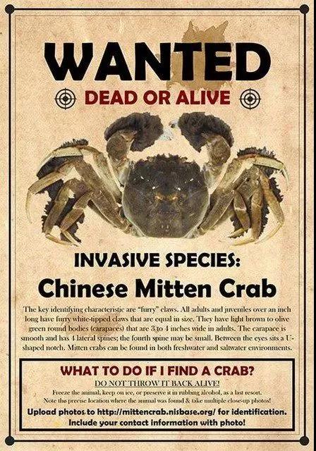 通緝令上寫的清清楚楚,要抓的就是中國大閘蟹(Chinese mitten crab)。