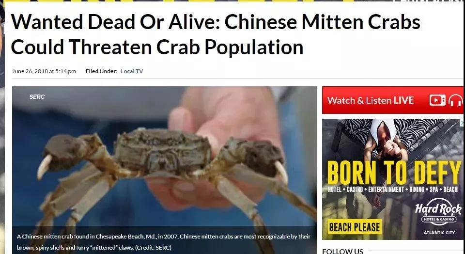 大閘蟹雖然廣受中國人的歡迎,在美國卻是人人喊打。當(dāng)?shù)丨h(huán)境保護(hù)部門把它視作入侵物種,要去公眾幫忙見到就抓,無論死活都不放過。