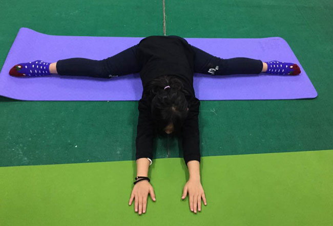 小盆友這個一字馬做得絲毫不費勁,一看就是練過的!