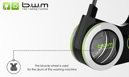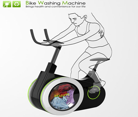 這款自行車名字叫Bike Washing Machine,它采用了自行車的造型,并且在主體內(nèi)部設(shè)計了滾筒洗衣空間,并且還使用了透明的玻璃門設(shè)計,可以清楚的看到里面的內(nèi)容。這個設(shè)備的腳蹬與洗衣機的滾軸相連,我們將臟衣服和水諸如到滾筒里,然后坐在上面開始騎行就可以帶動滾筒進行開始“人力洗衣”。