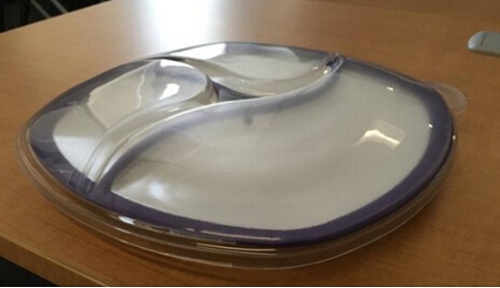 這款Smart Plate碗與普通的餐具幾乎沒(méi)有任何區(qū)別。盤內(nèi)整體分為三個(gè)部分,分別擺放各種食物,一般我們可以放上一飯兩菜就基本足夠了。比較貼心的是,Smart Plate還配了可微波加熱的透明托盤蓋,可以將食物倒扣在托盤蓋上進(jìn)行加熱。加熱后重新裝到盤中,可隨時(shí)開始進(jìn)行監(jiān)控,監(jiān)控新的熱量顯示。