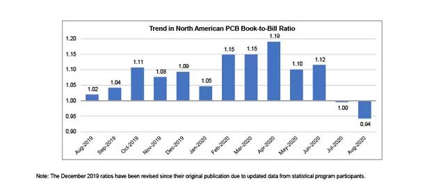 據(jù)PCB廠報(bào)道,2020年8月北美PCB的總發(fā)貨量比去年同期下降了2.5%, 與上個(gè)月(7月份)相比,8月出貨量下降了1.0%。