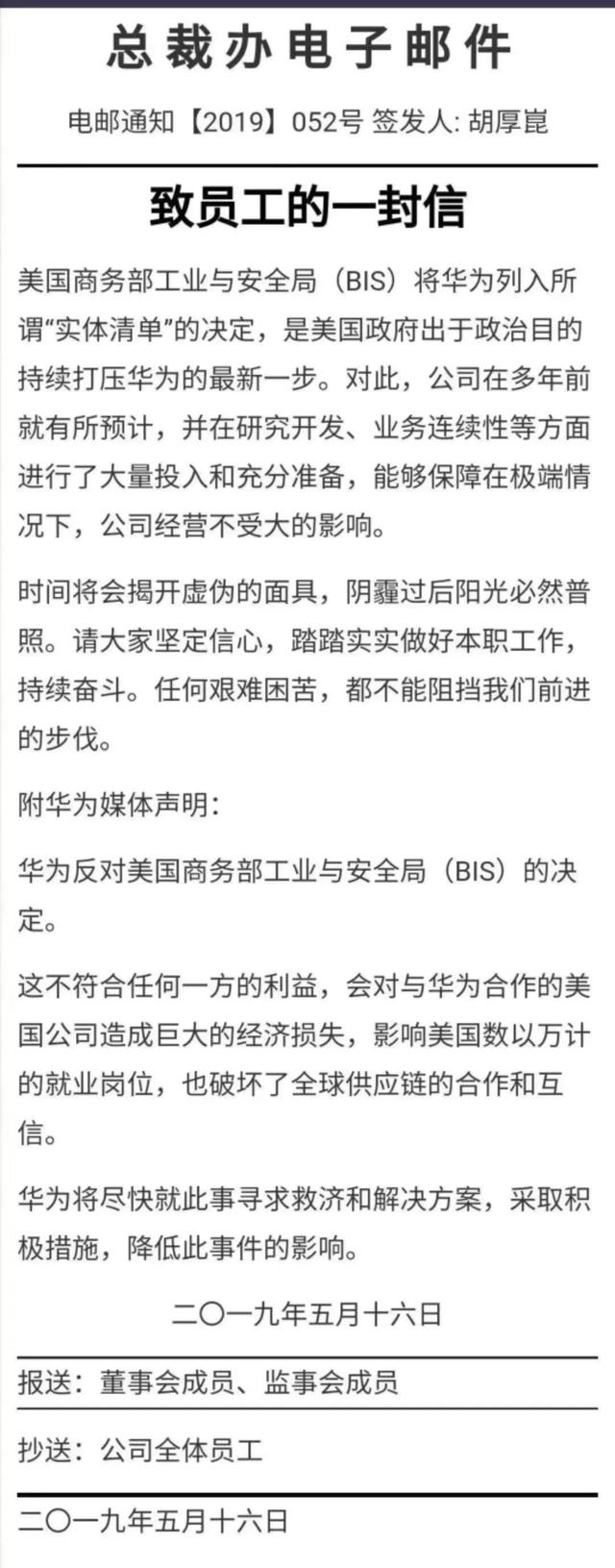 然而,近兩天內(nèi)被曝光的華為公司兩封內(nèi)部信件卻顯示,華為早有準(zhǔn)備。