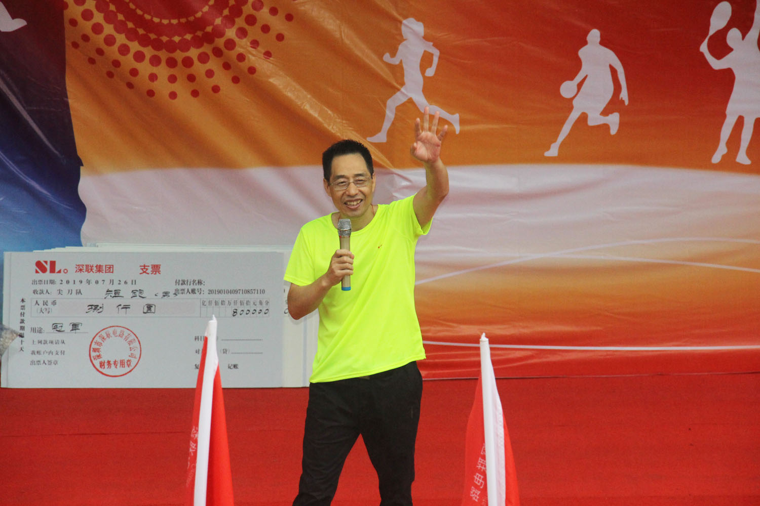 深圳深聯運動會閉幕式暨頒獎儀式正式開始!當然,也是我們贛州兄弟廠的歡迎儀式。首先就是我們的安總致歡迎詞,以及贛州廠代表致辭。