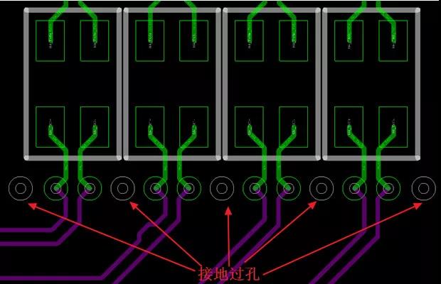 給傳輸線上的信號(hào)過孔配置相鄰的接地過孔,主要有兩個(gè)好處:一是給信號(hào)過孔承載的信號(hào)提供良好的信號(hào)回流通路;二是通過接地過孔消除信號(hào)之間的電磁場(chǎng)輻射。