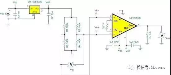 圖 2 是我用來展示焊劑污染所會(huì)造成結(jié)果的測(cè)試電路。由 2.5V 參考電壓激活的平衡惠斯頓接橋網(wǎng)絡(luò)可仿真高阻抗橋接傳感器。差分橋接傳感器輸出 VIN+ - VIN- 可連接至增益為 101V/V 的 INA333。在理想狀態(tài)下,由于橋接處于平衡狀態(tài),因而 VIN+ - VIN- = 0V。但焊劑污染會(huì)造成實(shí)際橋接傳感器電壓隨時(shí)間慢慢漂移。