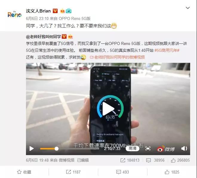 而這臺(tái)Reno 5G版是在不久前上市的,Reno十倍變焦版的基礎(chǔ)上加入了高通X50基帶實(shí)現(xiàn)5G功能,理論峰值傳輸速度達(dá)到2Gbps,不過根據(jù)參與了“5G星火計(jì)劃”的同學(xué)反饋,Reno 5G 版實(shí)測(cè)下載速度為700Mbs。