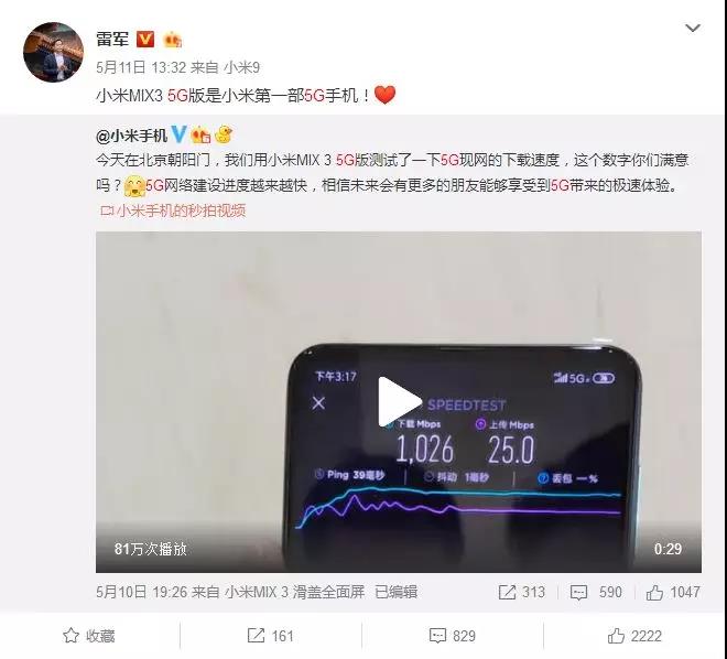 5月初,小米官微放出了一段MIX3 5G版“飆車”的視頻,看來小米的5G手機(jī)安排上了!