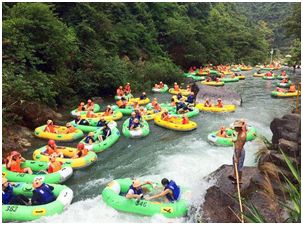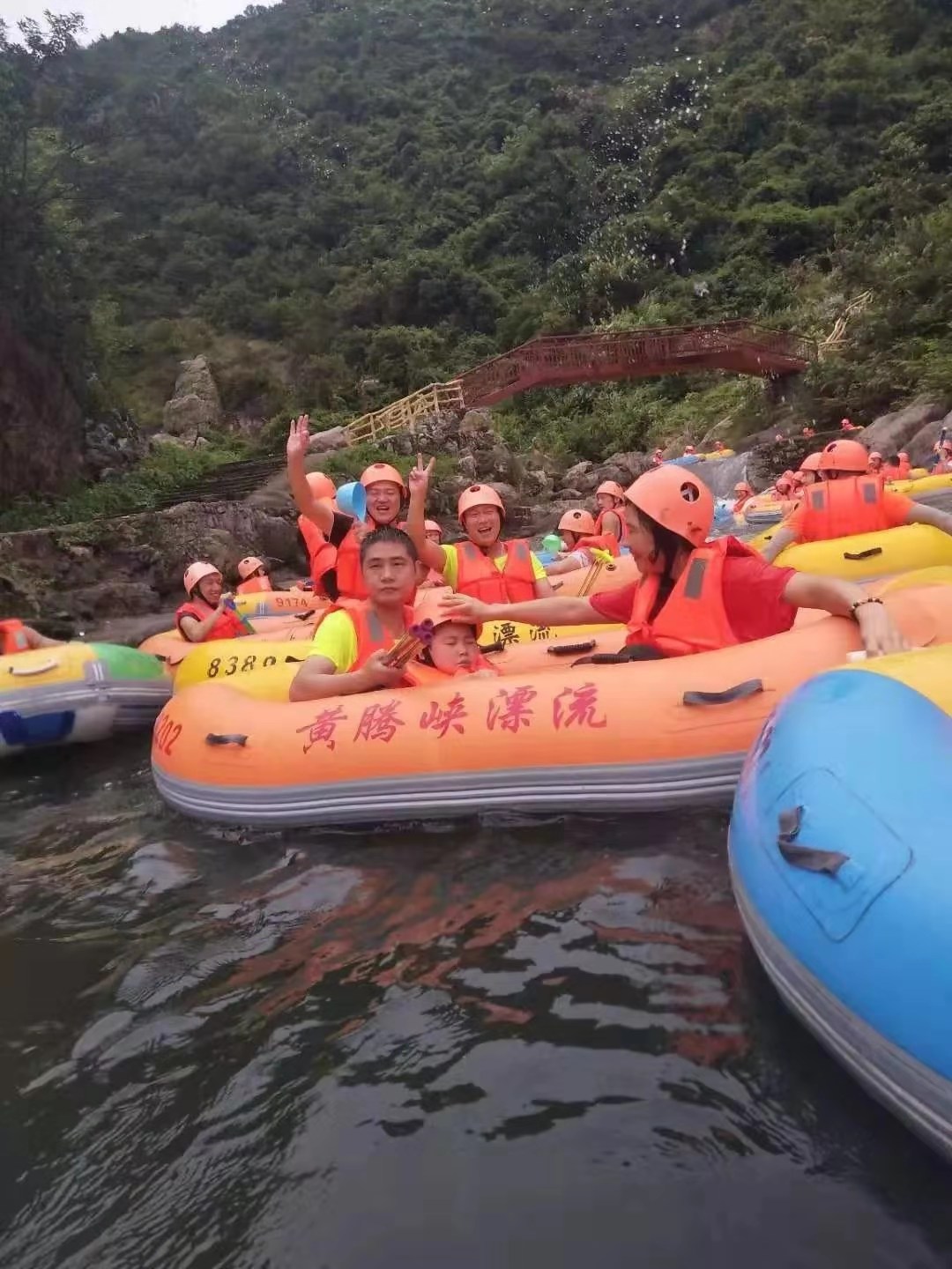 水質(zhì)一流、風景一流、空氣一流的黃騰峽,必須要體驗的項目漂流,全程4.8公里,河道總落差168米,最高落差12米,全程大概需要兩小時哦,刺激狀況自己先腦補一下……看到大家手里的水瓢、脖子上的收集防水套了嗎?那都是提前做了游玩攻略的小伙伴,各種裝備準備得妥妥的?。?/span>