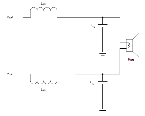 圖1所示的D類放大器橋接負載電路是一種輸出配置,揚聲器(或負載)連接在兩個放大器輸出之間,橋接兩個輸出端。因此,車用D類音頻放大器每個通道(揚聲器)通常需要兩個電感器。