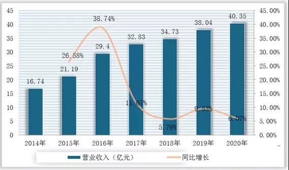 2014-2020年我國(guó)IC載板行業(yè)營(yíng)業(yè)收入及增長(zhǎng)