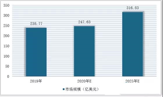 2019–2025年全球多層板總產(chǎn)值及預(yù)測(cè)情況