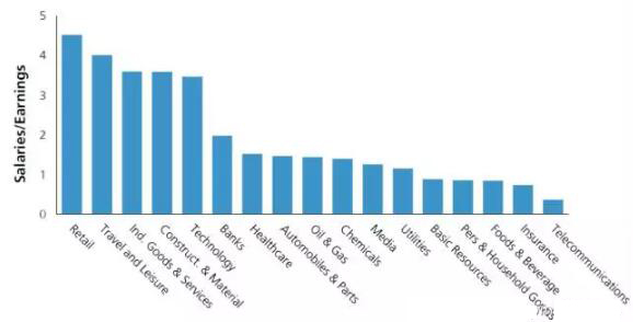 下圖來自于UBS的研報,人工智能代替勞動力對于不同行業(yè)的影響。