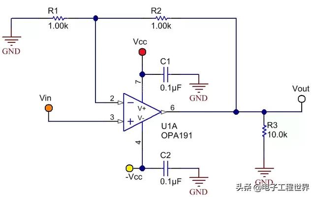 圖1:采用非反相配置的OPA191原理圖