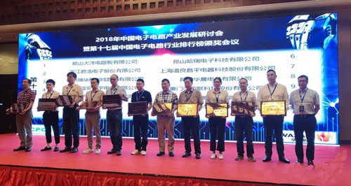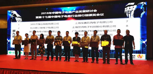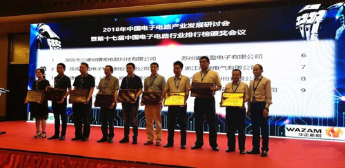 深聯(lián)電路PCB廠受邀參加2018年中國電子電路產業(yè)發(fā)展研討會暨第十七屆中國電子電路行業(yè)排行榜頒獎會議!