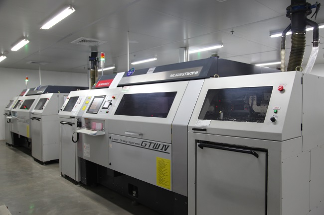 新增2臺(tái)三菱激光鉆機(jī),加上以前6臺(tái)共8臺(tái)了。這是第五代鐳射鉆機(jī),每秒可以加工805個(gè)孔,效率比原來(lái)提升18.35%。