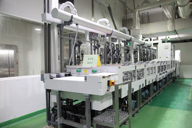 軟板的化學(xué)前處理線,也就是軟板的清洗線。正在新設(shè)備測(cè)試中……