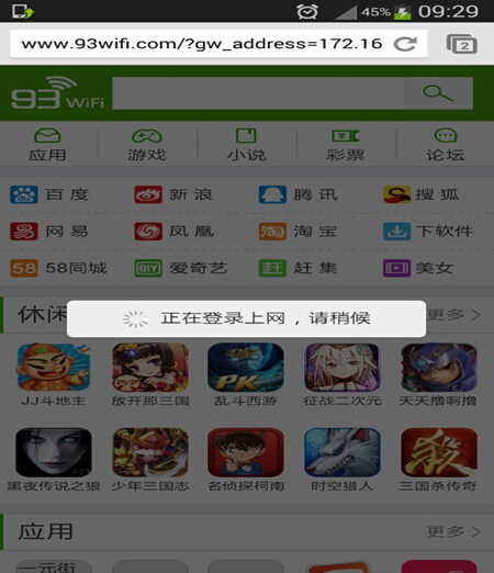 第三步.打開你滴瀏覽器,進(jìn)入任何一個(gè)網(wǎng)頁自動(dòng)跳入以下驗(yàn)證界面,提示:登錄成功就可以正常上網(wǎng)了。(注:不做網(wǎng)頁認(rèn)證無法使用93WiFi)