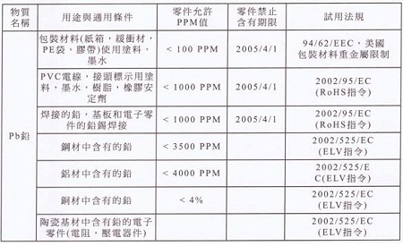 表1ROHS淮則針對銲料中Pb含量有嚴格標準