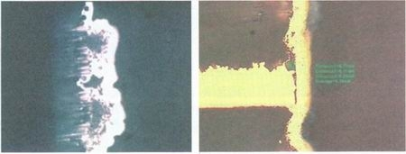 De-smear只要不超過0.3mil Etch back(回蝕)即可,一般而言除膠渣程度控制是以咬蝕量為主要指標(biāo),如果咬蝕暈穩(wěn)定但仍然有殘膠質(zhì)量問題,則可能有兩種狀況:其一是膠渣確實(shí)未清干凈,來自于過多不良鉆孔產(chǎn)生的殘膠。其二是膠已清除,但沾黏在孔壁未被后來的水洗清除。前者必須改善鉆孔制程,而后者則要改善水洗或強(qiáng)化De-burr的高壓水洗清潔能力。