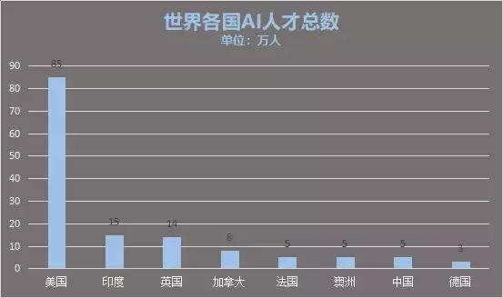 更重要的是,國內(nèi)的AI人才市場存在著相當(dāng)大的需求缺口。根據(jù)領(lǐng)英公司(LinkedIn)發(fā)布的《全球AI領(lǐng)域人才報告》中,可以看出全球有逾180萬的AI相關(guān)人才,其中排在第一位的是美國,幾乎占全球的一半,擁有逾85萬人。而中國排在第七位,僅有5萬人,和美國有著17倍的差距。