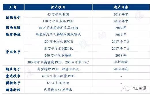內(nèi)資PCB廠商擴產(chǎn)項目 | 資料來源:公司