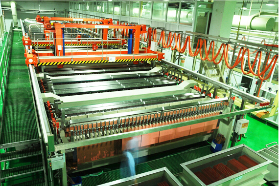 采用了“定時反脈沖”按照時間使電流在供電方式上忽而正鍍忽而反鍍(即陽極溶解),按照時間比例交替進行,使電鍍銅的沉積很難在常規(guī)供電方式取得相應的銅層厚度而得以解決。當陰極上的印刷線路板處于反電流時,就可以將孔口高電流密度區(qū)銅層迅速得到迅速的溶解,由于添加劑的作用,對低電流密度區(qū)影響卻很微,因而將逐漸使得孔內(nèi)銅層厚度與板面銅的厚度趨向于均等。