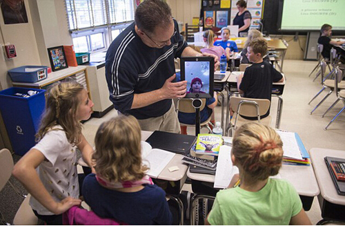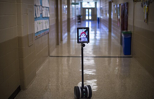 先來(lái)看看這位9歲小女孩佩頓是如何“重返校園”的。這個(gè)的機(jī)器人是一個(gè)固定在滾動(dòng)平衡車(chē)上的iPad屏幕,佩頓稱(chēng)它為酷炫的虛擬分身(Peyton's Awesome Virtual Self)。佩頓通過(guò)另外一個(gè)iPad上的應(yīng)用軟件對(duì)其進(jìn)行遠(yuǎn)程操控。機(jī)器人代替佩頓,行走在校園中,和同學(xué)們聊天,和小伙伴們一起上課。