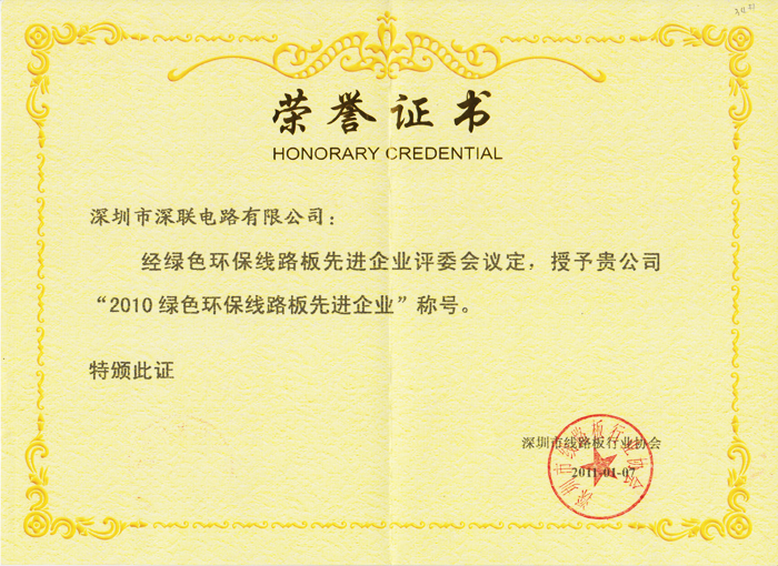 2010年線路板行業(yè)綠色環(huán)保先進(jìn)企業(yè)